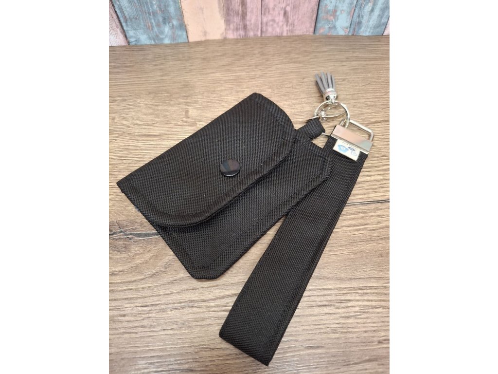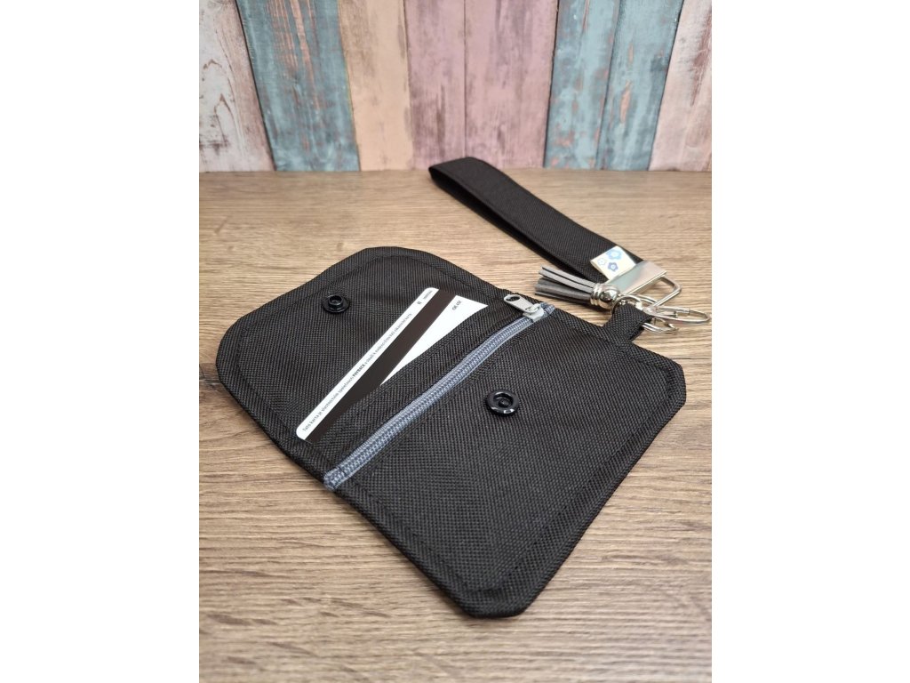 Praktická klíčenka s malou peněženkou vyrobena z kočárkoviny v černé barvě