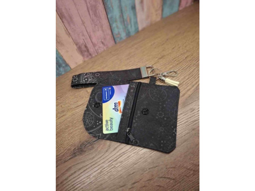 Peněženka má dvě kapsičky, jednu na zip na kovové mince a druhá Vám poslouží na kartu nebo papírové bankovky