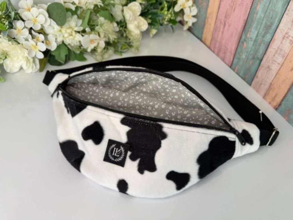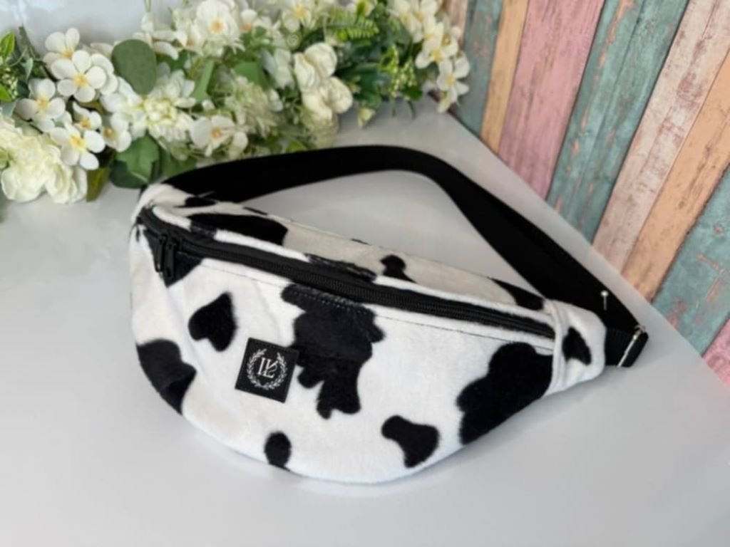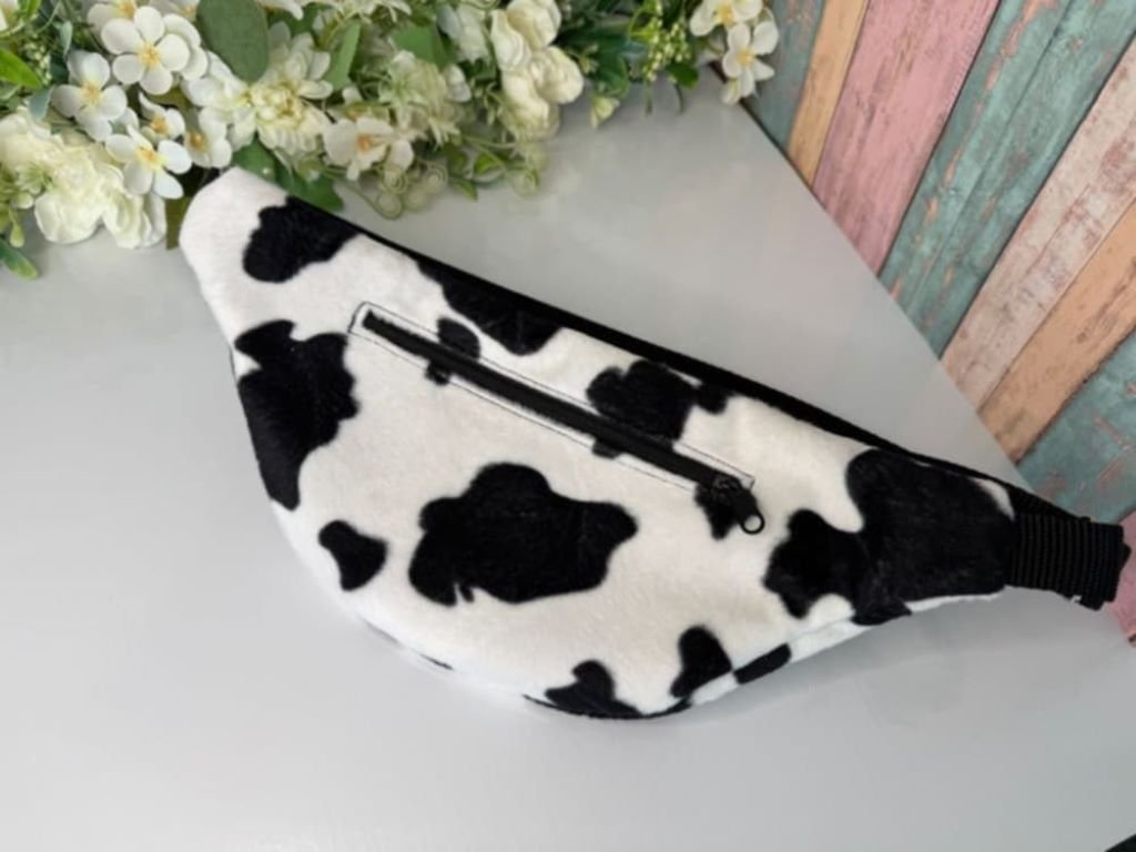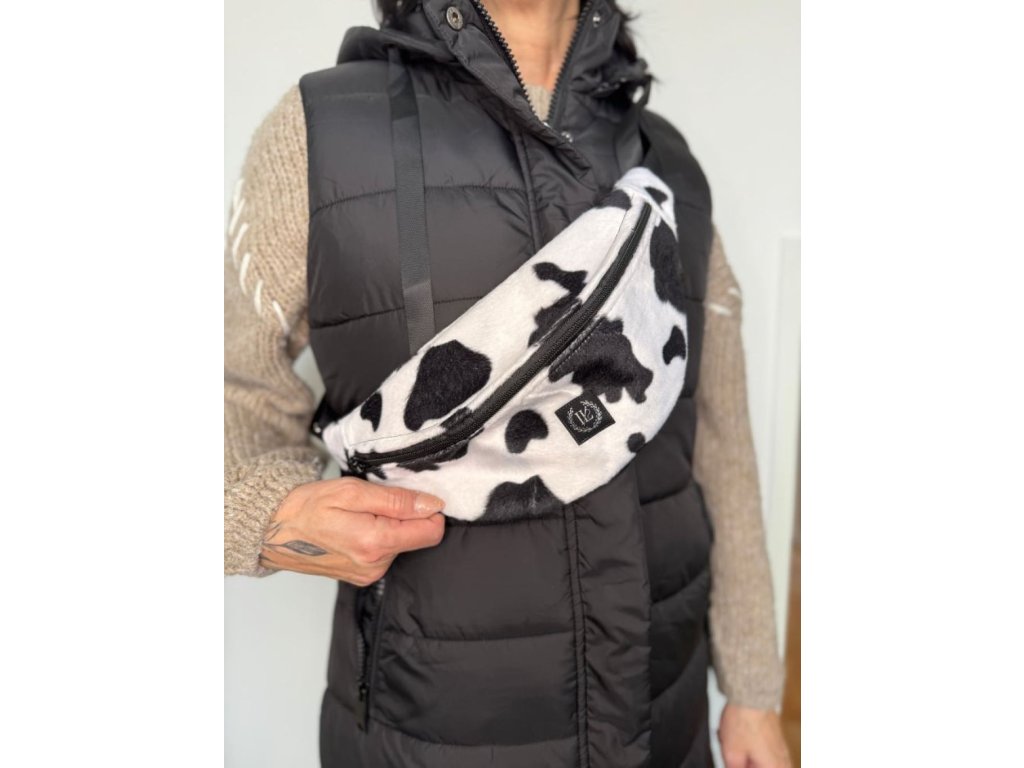 Originální plyšová ledvinka s motivem kravičky zaujme na první pohled,