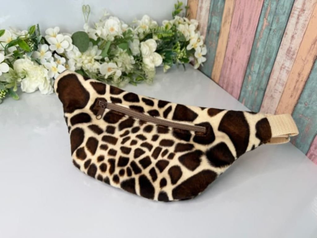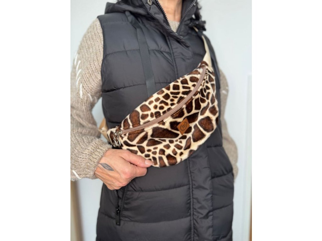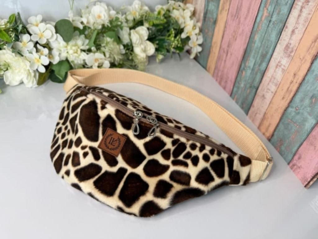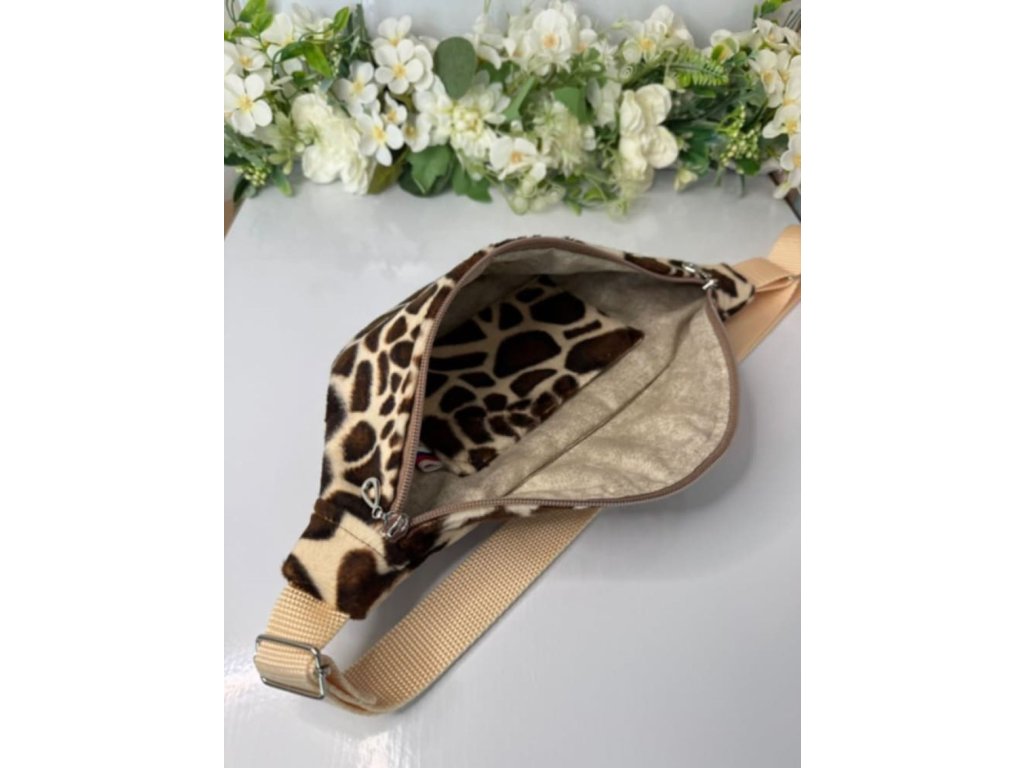 Originální plyšová ledvinka s motivem žirafy zaujme na první pohled,