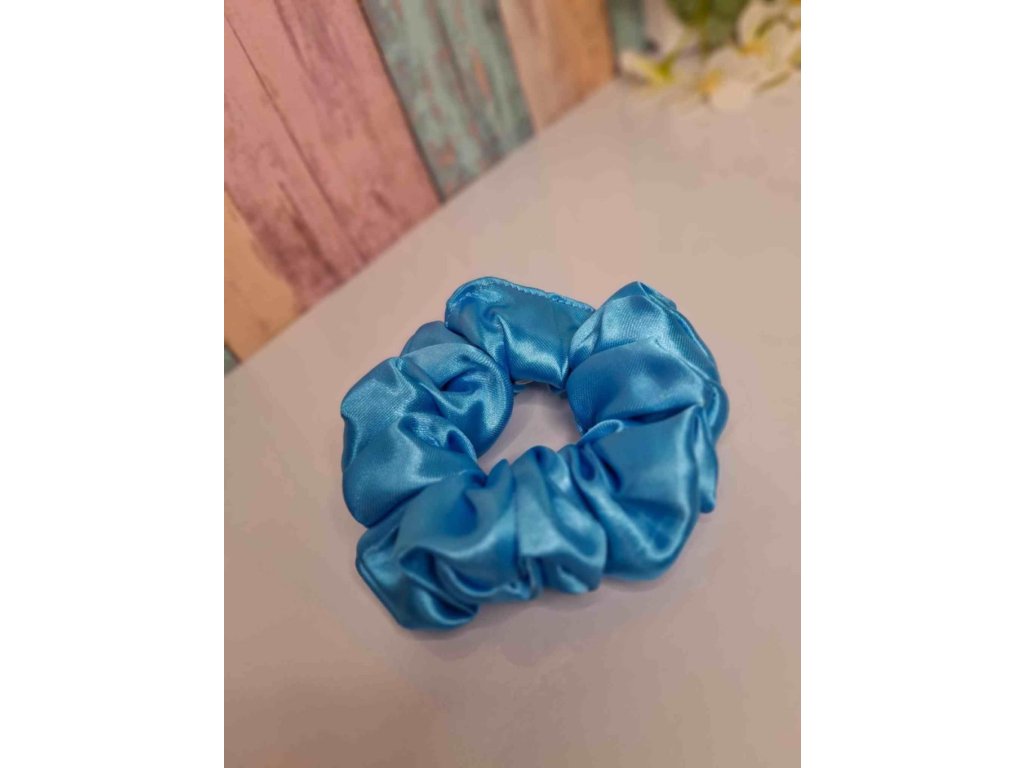 Ručně šitá saténová scrunchie, která pohladí vlasy i oko, je z jemného materiálu a šetrná k vlasům