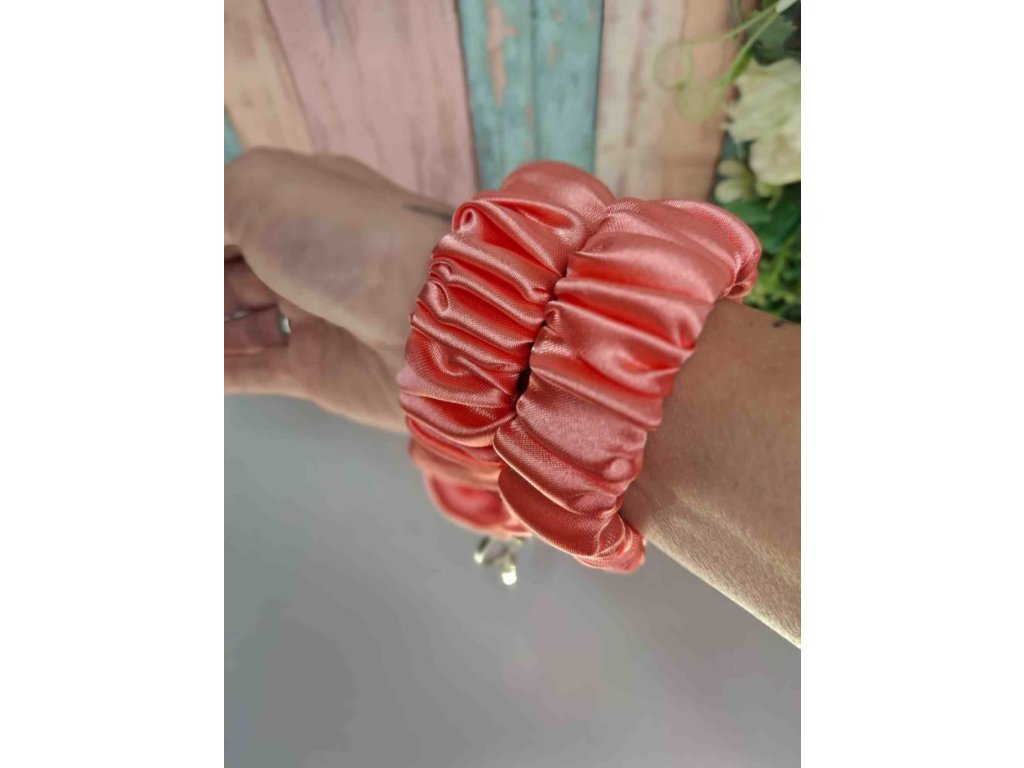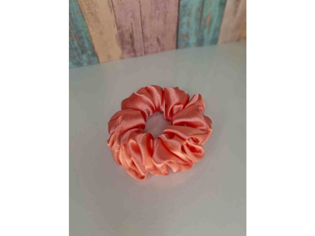 Ručně šitá saténová scrunchie, která pohladí vlasy i oko, je z jemného materiálu a šetrná k vlasům