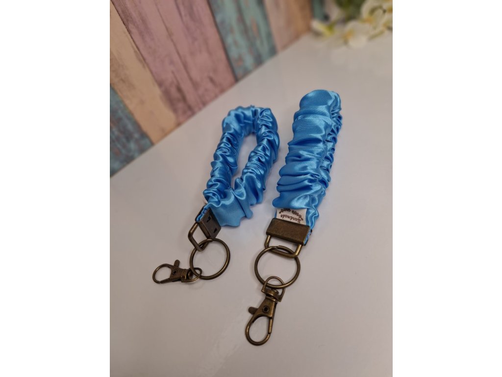 Elegantní jemná klíčenka v bledě modré barvě, kterou můžeš nosit i na ruce