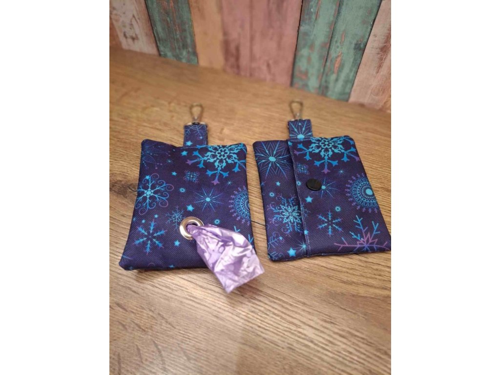 Taštička na pytlíky modrá s vločkami